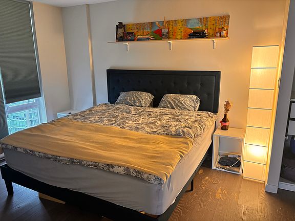 Very spacious private room with a huge bed, wood floors and lots of light.