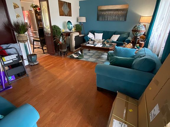 This 3 bedroom, single family home is very spacious with an eat-in kitchen and large master bedroom (currently being used as a second living room in the photo). Enjoy spring and summer fun in the very large backyard with two patio areas. There is also a finished basement with washer dryer hookups. Convenient to major freeways for commuting.