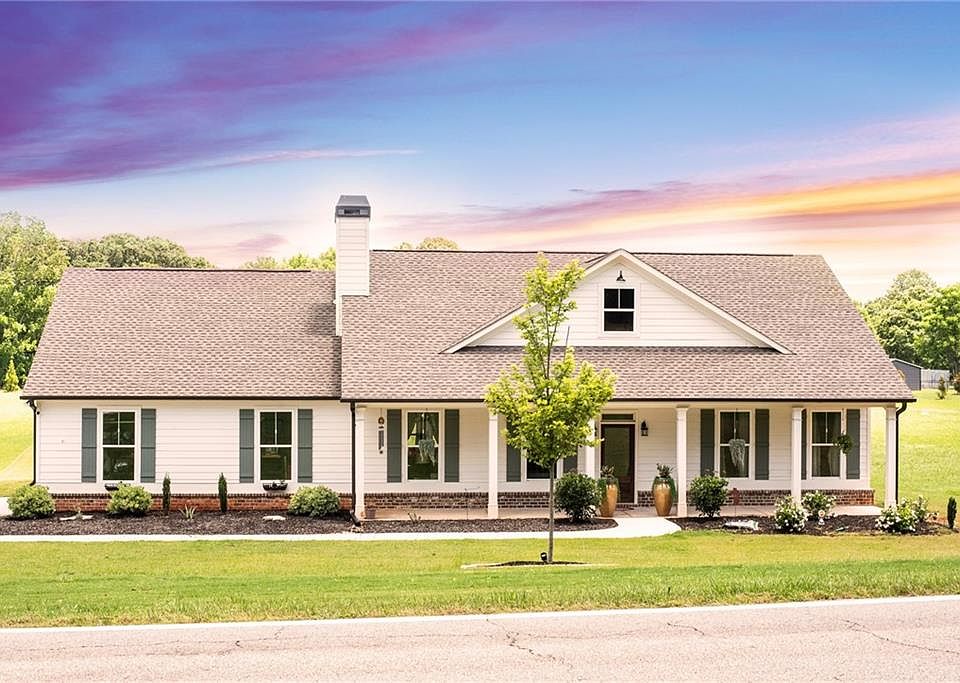 Welcome to this beautifully crafted ranch-style home sitting on 2 acres in Walton County. Built in 2022, this 4 bed/2.5 bath residence combines modern comfort with timeless charm. Step into an open-concept living space featuring vaulted ceilings, a fireplace in the great room, and LVP flooring throughout. The gourmet kitchen boasts granite countertops, a large island, plenty of cabinet space, a pantry, and a breakfast/dining area. The spacious owner's suite offers trey ceilings, a walk-in closet, and an en-suite bathroom with a double vanity, separate soaking tub, and tiled shower. Three additional bedrooms share a full hall bath, providing comfort for family or guests. Enjoy the peace and quiet from the rocking chair front and back porches. The expansive 2-acre lot offers privacy and space for outdoor activities. Located in a peaceful, non-HOA community, this home is served by Atha Road Elementary, Youth Middle, and Walnut Grove High School. Experience the perfect blend of modern amenities and country living, welcome home!
