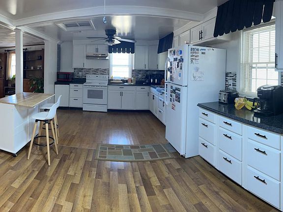 Walk into the great room which houses the kitchen and dining area. The dining area has original built ins and a fireplace. Adjacent to the kitchen is the laundry room. From the kitchen you'll go into the living room with hardwood floors, fireplace and a door that takes you to the West Valley road side of the property. Off the living room is the master suite. Through the living room are two additional bedrooms and a full bath. This home has had some electric and plumbing updated. May require flood insurance.