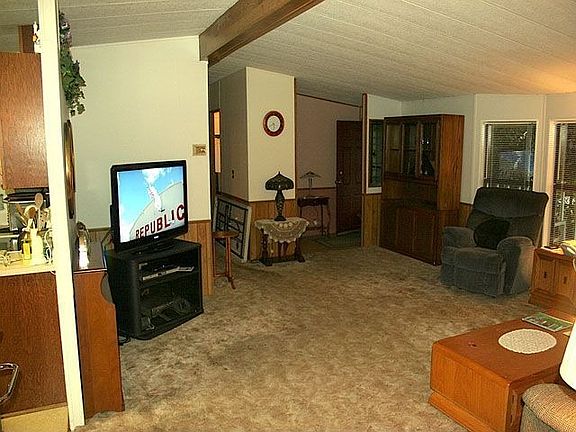 This could be your DIAMOND! This home has a great floor plan with vaulted ceilings and a big living room. Formal dining room has built-in hutch and newer laminate flooring. Master bedroom is on one end of the house and two more bedrooms at opposite end. Master bath has a soaking tub with separate shower. This home has a nicely-sized front deck and back covered patio. Many possibilities! 1 year home warranty paid for by seller.