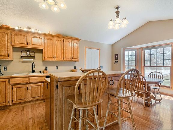 Beautiful one owner walkout rambler on 5 acres. This home features HW floors through kitchen/ DR, raised panel custom cabinetry, two tier breakfast bar, large windows for natural light & built-in's for additional storage. Great room w/ vaulted ceiling, stone surround gas FP, oversized door to deck & beautiful pond views. Master bedroom/ bath w/ new flooring, solid surface countertop & new fixtures. Fully finished LL w/ knotty pine, great entertaining space, 4th bedroom was used as an office w/ built-ins. Extensive keystone landscaping w/ firepit & paver patio.