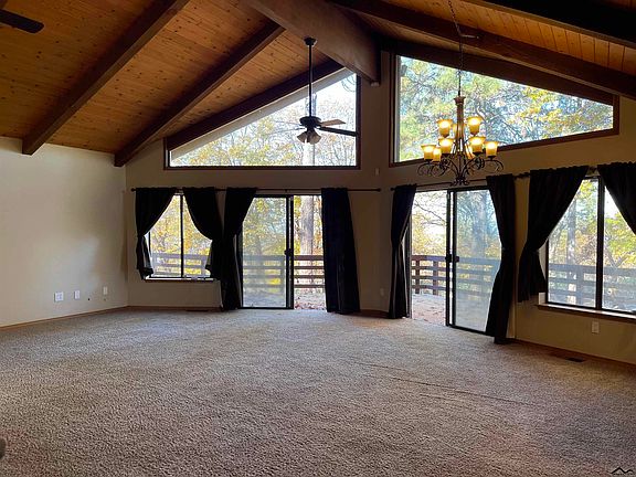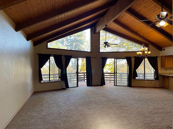 Gorgeous mountain home with beautiful wood beam vaulted ceilings in living room. Wood stove on a large rock wall look out onto the wall of windows and property. Large great room opens up to kitchen with travertine tile, granite counters, stainless steel appliances including fridge, stove, trash compactor and dishwasher. Bedrooms are spacious and include views of property, master suite has sunken tub and shower, all bathrooms have granite counters and travertine tile,3rd bedroom has the dramatic wood beam ceiling. Walk in pantry complete with shelving and trash organizer, closets and more closets, larger laundry room, and all interior doors are upgraded. Rear of property has end to end decking with views and the property has high end fencing leading to 10 plus acres. Property sits at the end of a dead end road with lots of privacy and quiet.