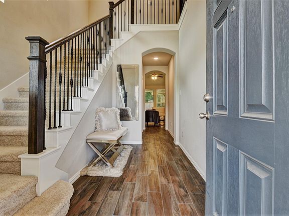 Gorgeous home backing to trees! Don't miss out on this beauty in sought after Wrights Landing! This 3 bedroom energy efficient home has everything you are looking for. Wood tile throughout first floor provide a rich, warm inviting appeal. The kitchen boasts gorgeous granite, a huge island, 42" white cabinets and stainless steal appliances. Large picture window in kitchen is adorned with high end plantation shutters. Huge master bath with a large soaking tub and separate shower. Back yard has extended covered patio and is fully fenced. Wrights Landing offers a community pool, stocked pond, open play area and even has a fenced dog park!