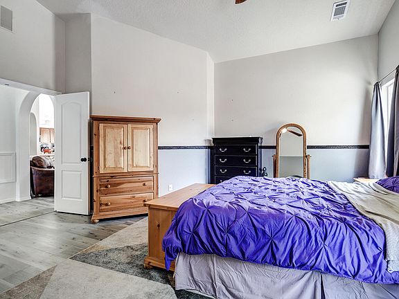 Beautifully maintained 4-bedroom, 2-bath home in the desirable Sagebrush at Huning Ranch. This spacious single-story offers vaulted ceilings, abundant natural light, and an open floor plan with multiple living areas for flexibility and entertaining. The kitchen features a center island and ample cabinet space, seamlessly connecting to the dining and living spaces. The private primary suite includes a walk-in closet and en-suite bath with dual sinks and a shower/tub combo. Three additional bedrooms provide versatile options for guests, a home office, or hobbies. The entire interior has been freshly painted, with beautiful faux wood flooring throughout. Refrigerator in garage, washer, dryer, and a fully owned water softener all convey.