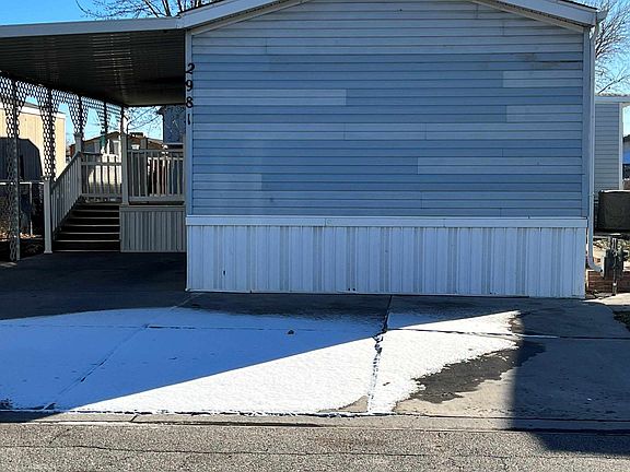 This 1040 Square foot 2bed, 2 bath manufactured home in SE Grand Junction is on its own lot! Large storage shed. Brand new shingles and flooring. Nice appliances. Custom remodel has created an open living space and includes kitchen cabinets with pull-out shelves, jetted bathtub, oversized walk-in shower, and addition that includes a massive master closet and a mudroom not included in square footage. This home features a tankless hot water heater, forced air heat, pellet stove, and refrigerated air conditioning. HOA provides common areas including over-flow parking and RV parking. Pre-sale home inspection report available.
