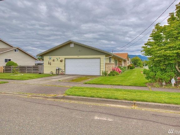 View of Mt. Rainier! Wonderful rambler on a corner lot in Enumclaw. Featuring 4 bedrooms and 2 baths. This home has been well maintained and needs nothing to move in. All appliances Stay! Outside has pretty gardens and two sheds. The backyard is fully fenced with a large covered deck. The master bedroom has a private bath and two closets. The other 3 bedrooms are well sized. Kitchen is large with a lot of counter and storage space. There is an oversized laundry room and storage room