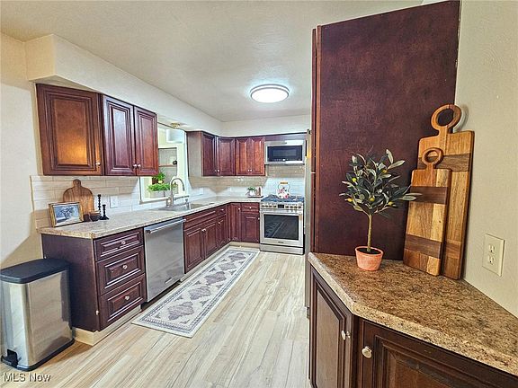 2054 sq ft of Living space. New Professional Level Frigidaire Stainless Refrigerator, Stove, Dishwasher, and Microwave. Family room with wood burning fireplace and built-in cabinets. Premium Luxury Vinyl Tile throughout the home for beautiful and easy maintenance. New LED lighting throughout the home. All bedrooms have new LED lighting with built in fans. Fresh paint in all rooms. Fantastic deck overlooking fenced in backyard. This home qualifies for the AT HOME in Youngstown Grant - $10,000 down payment assistance plus an additional $15,000 for energy efficiency upgrades. Please call for details.