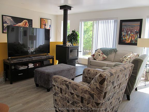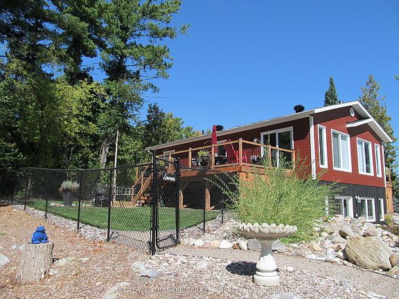 Unique property set in the charming village of White Lake! This immaculate two year old home is surrounded by thoughtfully landscaped gardens with two decks on each side to capture both the morning sun and afternoon shade. Welcome to this open concept design home drenched in natural light. Two bedrooms, spacious bath with double sink vanity, bath tub, large storage closet plus your laundry facilities on main floor. The bathroom, for your convenience when entering the house at the front foyer, has a pocket door entry together with an entry from the main hallway. Enjoy winter warm winter evenings by the wood burning stove in the living room. Entertain family and friends sitting around the dining room table or or on the oversized side upper deck accessed via patio doors while watching the family kids and pets can play in the fenced yard. The showcase kitchen features Frigidare Gallery stainless steel refrigerator, propane stove, dishwasher, double sinks and handy island. Storage is made simple with a separate pantry/storage room next to the kitchen. Decorated through-out in cheerful, complementary colours, laminate floors, no carpets and smoke free. The ground level is presently unfinished so use your imagination to design rec/exercise area or establish an at home business venture. This area has radiant floor heating, 10 foot ceilings, roughed-in for a future bathroom, utility sink, furnace, air purifier, water softener and has patio doors to the front stone patio. Professionally landscaped with tastefully thought placement of gardens, rocks, patios and upper decks. Live well while enjoying the village lifestyle where you can walk to the General Store, church, restaurant, spend your summer days fishing, boating and swimming on White Lake minutes away. There are a myriad of local activities - golfing, ski hills, snowmobile trails, music/restaurant venues in Burnstown. All this is yours and you are only 10+ minutes to Arnprior and 417 Highway. Don't miss out!