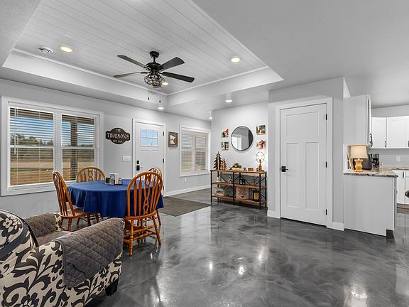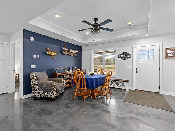 Nestled in a tranquil cul-de-sac on the outskirts of Breezy Point, this stunning home awaits. The kitchen's center island is perfect for quick bites or entertaining guests, complemented by custom granite countertops. The primary suite boasts an oversized walk-in closet, large bathroom with double sinks, and a custom-tiled shower with a floating tub. Throughout the home, modern epoxy floors offer a timeless, durable finish. Situated on a private lot with minimal traffic, the home features a beautiful front porch with stamped concrete. The oversized three-stall heated garage includes plumbing and a wash tub, ideal for a pet bath or for projects around the house. This one level living home offers convenience to all the amenities and is move in ready.