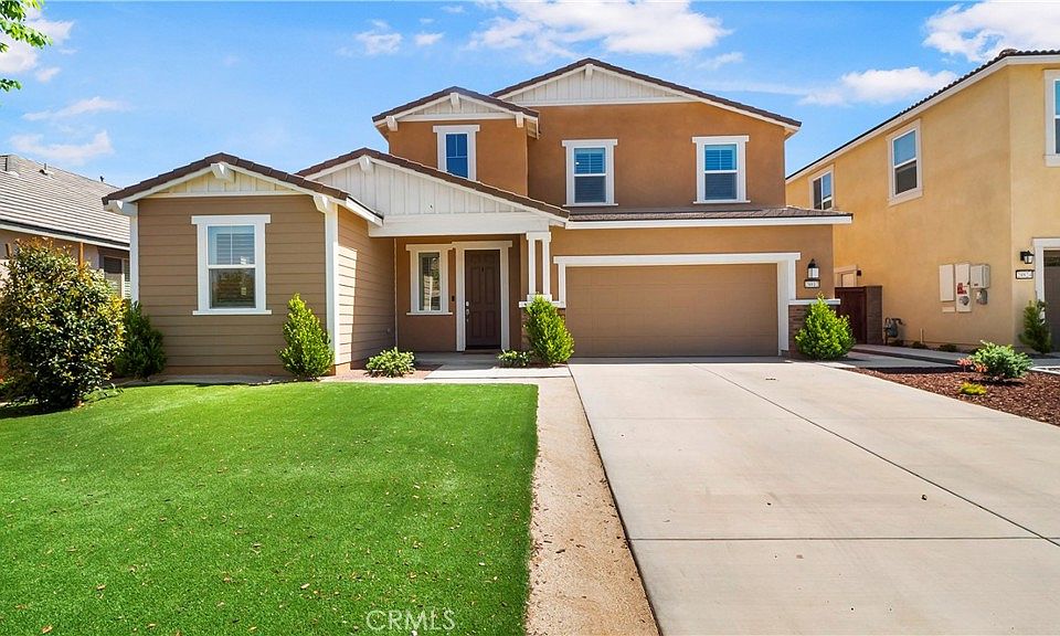 This Lennar Home! is Located in the city of Menifee, CA in the Heritage Lake Community some amenities are a Large swimming Pool, splash, playground, Tot-Lots, walking areas, Fitness trails, lakes, and more. This two story home features 4 good size bedrooms 3 full bathrooms. 3 bedrooms are up stairs 1 bedroom and full bathroom are down stairs, Classic Faux Wood Shutters throughout the windows, Granite counter tops beautiful brown kitchen cabinets, Nice Big Living room, 2,486sqft, completed Front and Backyard landscape with new turf, No neighbors behind The Home with a private sweet feel. PAID-OFF SOLAR, a must see. schedule a showing today.