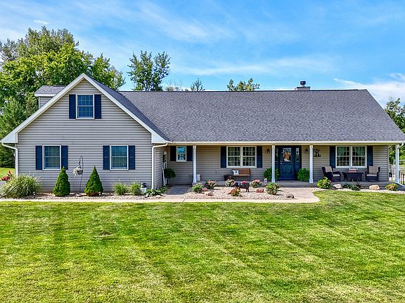 WELCOME TO THIS BEAUTIFUL COUNTY HOME & FARMETTE, perfectly situated on a picturesque 6+acres overlooking a lush green landscape & countryside. This is an equestrian dream come true featuring a recently renovated historic 50'x70' SF barn with stalls & loft that leads to a fenced-in pastures, creek, and shade trees. Recreational hobbyist will truly enjoy the 45'x66' SF metal storage building featuring 14'w x 12'4"h overhead door built in 2015. Meticulously updated and cared for, this 2300 SF+, 3 bedroom, 2.5 bath home harmoniously blends contemporary elegance with that of a charming rural lifestyle. This classic cape cod style exterior provides an inviting outdoor living space with welcoming front porch, lovely expansive views, private backyard oasis including large above-ground heated pool and screened in porch. Enjoy year-round recreation and enjoyment! Gather family & friends in the updated kitchen with beautiful Hickory Custom Cabinetry and stunning Quartz Countertops, counter bar seating & 2024 new GE high-end Stainless Appliances. The kitchen/dining area incorporates an open concept featuring an impressive 15'x20' family room with wood burning stone fireplace featuring a grand mantle and hearth that offers both warmth and comfort. Oak hardwood flooring flows seamlessly throughout as you step through the front door into the large foyer area with a thoughtfully designed private office/den with French doors for privacy, and large formal dining room. This home features 2 main floor bedrooms plus 2nd floor guest suite with half bath. The main floor's luxurious primary suite offers plenty of privacy that features walk-in closet & updated bathroom. You'll love the heated & air-conditioned garage w/basement access, newly paved driveway, main floor laundry and mudroom, screened in porch, 2019 life-time roof warranty, 2-2013 Generac Generator, 1000 gal privately owned propane tank, 2021 furnace and August 2024 air conditioner. In addition, maximize your square footage by finishing the full basement currently prepped with bath fixtures and ready to be redesigned to include additional bedrooms and living space! This home offers an exceptional location being conveniently located just 20 minutes from either I-88 or I-80. Every detail of this home, buildings, and property has been impeccably and meticulously updated and cared for ensuring that this home is ready for you to move in and enjoy!
