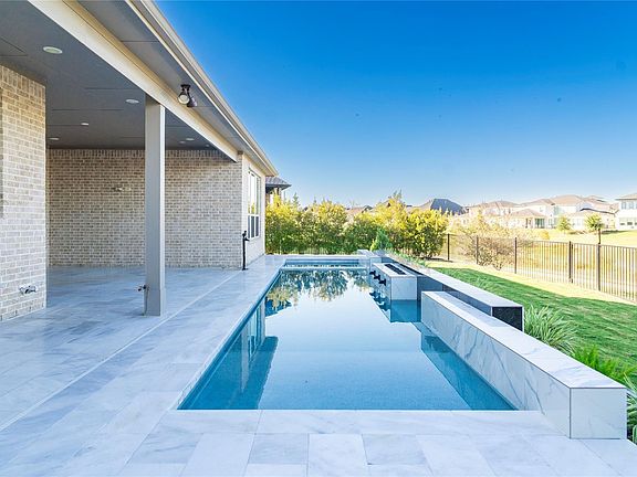 Stunning fully upgraded lake home in the desirable CCR community! Features include a grand double-door entry, hardwood floors, a 2-story foyer, home office with French doors, and a formal dining room. The family room boasts a cozy fireplace, wall of windows, and marble tile extending to the second-floor ceiling. The kitchen offers a walk-in pantry with automated lights, a large island, and custom shelving up to the ceiling. The first-floor primary suite includes dual vanities, a garden tub, separate shower, and two walk-in closets, plus a hidden room and a second bedroom. Enjoy a spacious patio with lake and fountain views, a 1-year-old pool with hot tub, jacuzzi, fire pits, and water features. Additional highlights: 3-car garage with epoxy floors, built-in water softener, and sprinkler system. Walking distance to schools, shops, and easy access to West Park Tollway & Texas Heritage Pkwy!