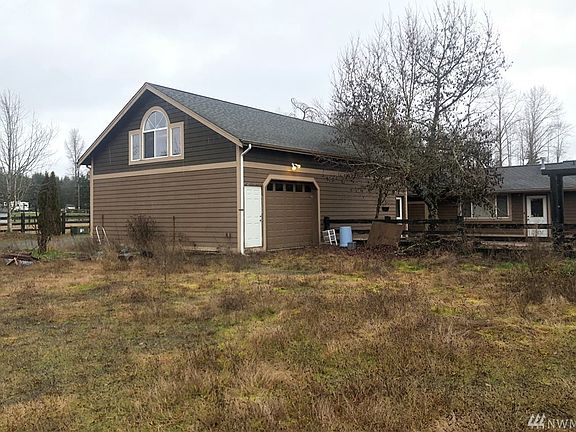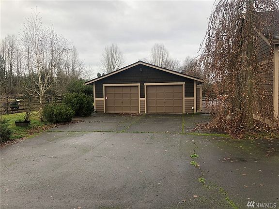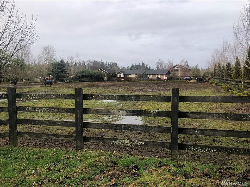 Perfect & Private Location on over 12 Acres! Views of Mt. Rainier & plenty of space to roam and relax! This spacious home features an open floor plan with formal dining & an abundance of windows allowing for natural light. Den/office has built-in work area & double entry glass doors. Enjoy a huge patio perfect for entertaining and privacy, fruit trees, detached 3 car garage, outdoor arena & sports court, and a barn that needs some TLC. A ton of potential and the possibilities are endless!
