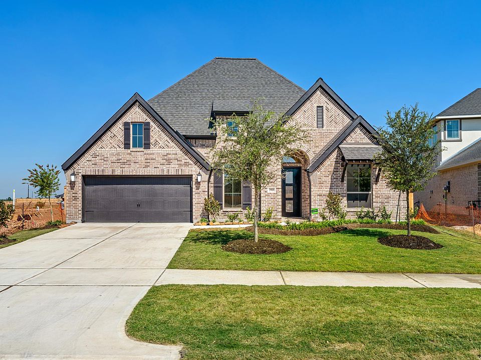 PERRY HOMES NEW CONSTRUCTION! Home office with French doors set entry. Media room with French doors off extended entry. Formal dining room flows into open family room with wall of windows. Kitchen features corner walk-in pantry and generous island with built-in seating space. Adjoining morning area features wall of windows. Primary suite includes double-door entry to primary bath with dual vanities, garden tub, separate glass-shower and two walk-in closets. Guest suite offers private bath. High ceilings and abundant closet space add to this spacious four-bedroom design. Covered backyard patio. Mud room off three-car garage.