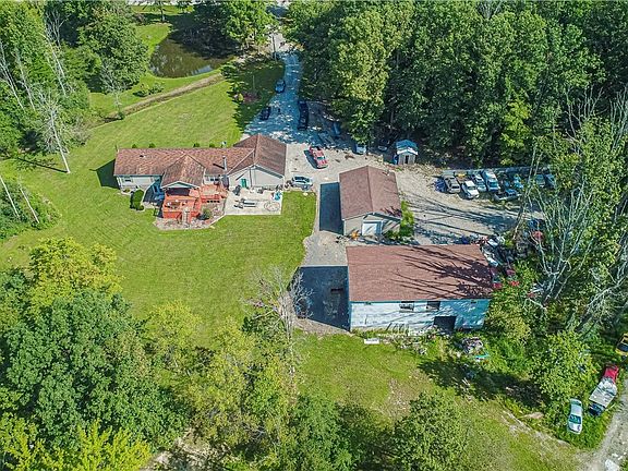 WOW GREAT OPPORTUNITY !! 5 bedroom 2 bath ranch with full finished walk out basement !! 12 acres with pond in the front and pond in the back and tiered covered deck for all your family picnics and cookouts. Big eat in kitchen with island flowing into family room with fireplace. Split floor plan with master bed and bath on one side and 2 beds and full bath on other side of living room and dining room. Huge 2 1/2 car attached garage and another outbuilding with electric and water and bathroom .. perfect for working on race cars and another huge 32 x 60 2 story outbuilding just waiting for all the finishing touches from a mechanic, builder , ect. Full walk out basement has 2 more bedrooms, huge rec room and bar. This property has something for everyone !!