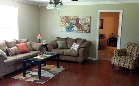 Renovated home! 1,400 Sq. ft. with new carpet and fresh paint. Master bedroom with attached bath. Double vanities. 2 car attached garage. Deck on back of home.