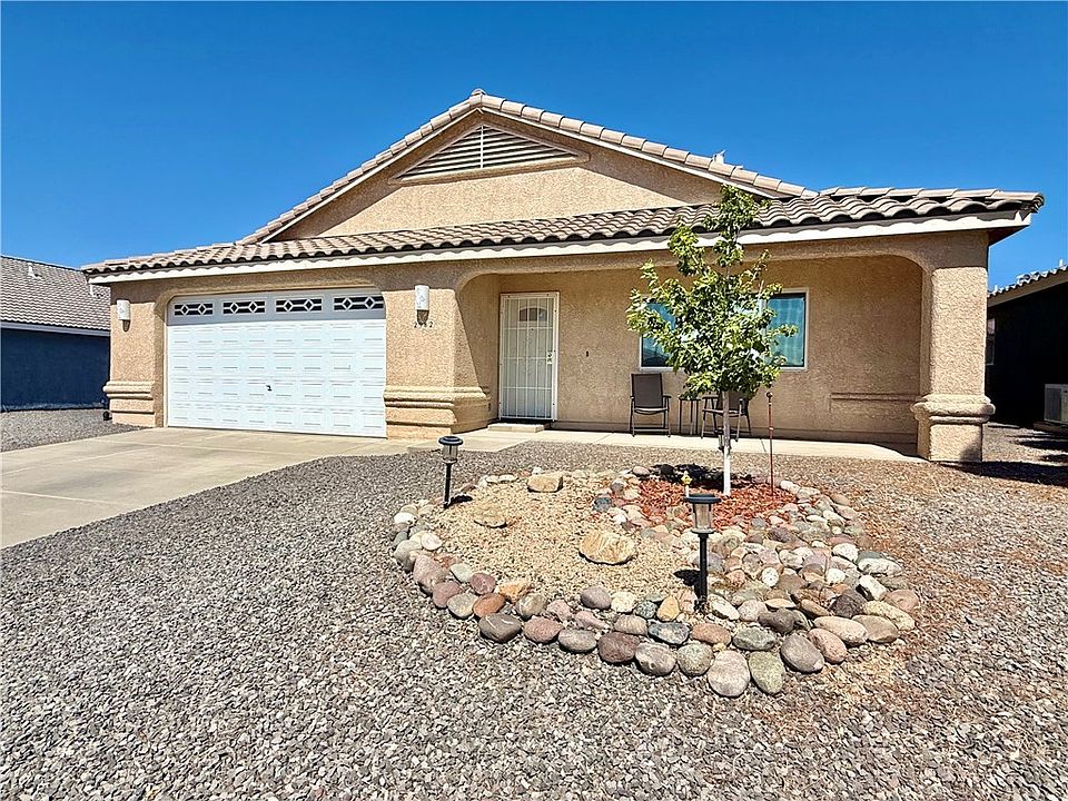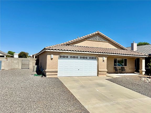 Beautiful Stucco Home with RV Parking & Spacious Layout! Welcome to this meticulously maintained 3-bedroom, 2-bath stucco home featuring a classic tile roof and great curb appeal. Step inside to find a bright, open floor plan with a spacious kitchen offering a breakfast bar, two pantries, and ample counter space perfect for entertaining or everyday living. Enjoy outdoor living year-round with covered patios in both the front and back, and a fully enclosed block wall for added privacy. The oversized two-car garage includes built-in shelving for all your storage needs. Bonus: RV/motorhome parking with full hookups! The master suite boasts a full wall of closet space, dual sinks, and a tub/shower combo. Both guest bedrooms offer generous space and comfort. A skylit foyer adds natural light to the center of the home, and the indoor laundry room adds everyday convenience. Additional features include a cozy gas fireplace, indoor laundry, and excellent condition throughout. This home is move-in ready!!