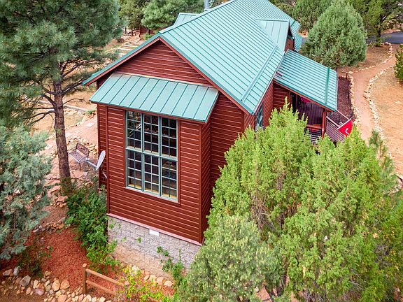 - Exterior Features: Covered Porch/Deck, Tall Pines on Lot, Porch/Deck, Landscaped, In the Trees, Guest Quarters, View of Mountains, Satellite Dish, Panoramic Views, Sprinklers