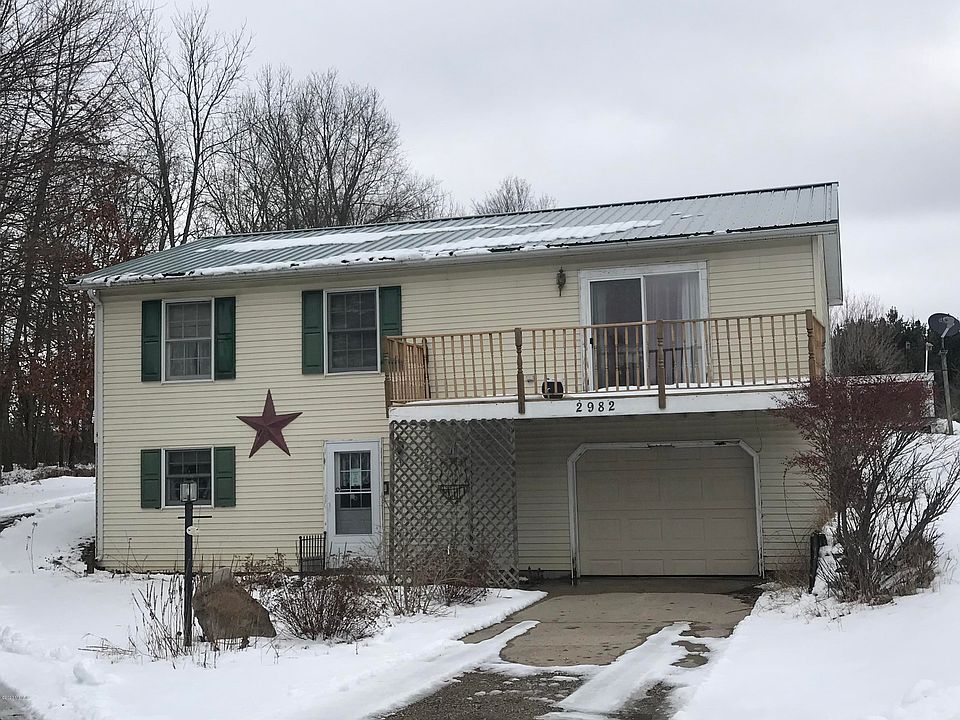 Welcome to 2982 W South County Line Fenwick, MI 48834. This three bedroom, one and half bath raised ranch is nested on nearly four acres of land. The home features a large dine in kitchen with updated appliances. Hardwood floors throughout. Main floor laundry. Large living room with access to a front deck. The walkout lower level boasts a large family room, storage/mechanical room and an oversized one stall garage. The home has a private rear deck. Central Air. Natural Gas. School of choice with Central Montcalm or Belding. To top it off there is a 20 by 32 workshop and various storage sheds. All of this and adjacent to the Flat River State Game Area!