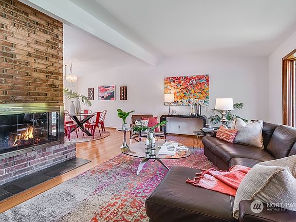 MidCentury Modern vibes ideally located in prized Marine Hills neighborhd, known for its large private lots in serene settings near the shores of Puget Sound. Long term owner's pride & joy, polished MCM finishes thru-out. Soaring vaulted ceilings, oak hardwds, corner firplc open to living/dining, eat-in kitch, custom glass windows & drs for max. exposure to sunlight, towering evergreens & scenic flowering landscape. 3 spacious bedrms/1.75bths main flr incl. privt bth off primary bedrm. LL: Recrm, 2nd firplc, office, 1/2bth. GIGANTIC garage & workshop, lovely private outdoor spaces, patios & gazebo. Metal roof, gas heat & water heater, new septic 2022. Easy stroll to Redondo Waterfront, MH Swim Club, short hop to Dash Point. Great Buy!