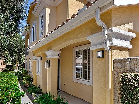 This highly desirable Paseo Del Sol Community townhome has two bedrooms and two bathrooms with 1373 Sq of open living space that includes a family room with a cozy fireplace, an open kitchen with plenty of cabinet space, and a formal dining area. The balcony together with large windows, all with custom shutters and shades provide an abundance of natural light to make for a very bright living area.The large master bedroom suite with its private balcony, the perfect place to enjoy your morning coffee, includes duel sinks, an oversized tub, and a separate shower as well as a generously large walk-in closet. Down the hall, you will find a bedroom with high ceilings, a laundry area, linen cabinets, and a full bathroom. There is also a 2-car garage. The private gated community has a children's play area, heated pool, and spa as well as ample space for guest parking.The complex is very close to stores, restaurants, a movie theater, a library, City Hall,and much more. Don't miss the opportunity to reside in this amazing condo!