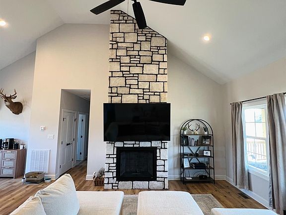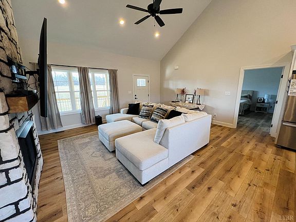 This beautiful ranch style home sits on 1.33 acres featuring 3 bedrooms and 2 bathrooms nestled in Goode, Virginia with views of the Peak of Otters. Enjoy the peaceful evenings sitting on the oversized covered front porch with a horse farm across the road watching the sunset. As you walk into the home you will be greeted with vaulted ceilings, a cozy fireplace and an open concept floor plan. If you love natural lighting then this is the house for you. In the main bedroom you will find a large walk-in closet, a bathroom with a his and hers sink, granite countertops and accent shower. The LVP flooring throughout the home is perfect for those with pets and children. Laundry room features a sink and overhead shelving. The walkout basement is unfinished with a rough in for a bathroom, which gives the perfect opportunity to expand the home with another bedroom, game room, den or home gym. Located in the Jefferson Forest School District. A must-see home!