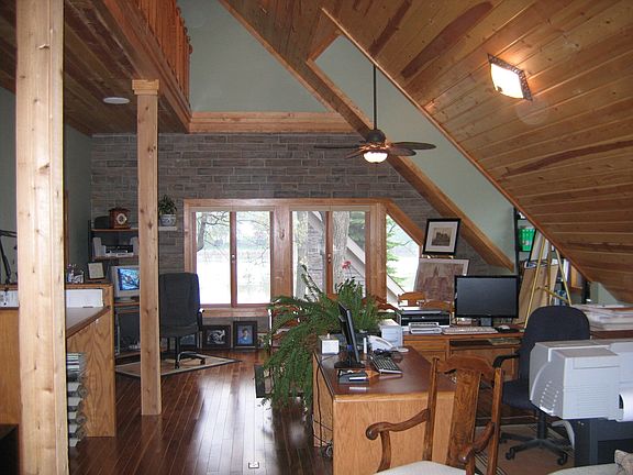Rustic eclectic, river front, three story home. Knotty pine ceilings throughout. Includes a chapel, library and mini seasonal guest house.