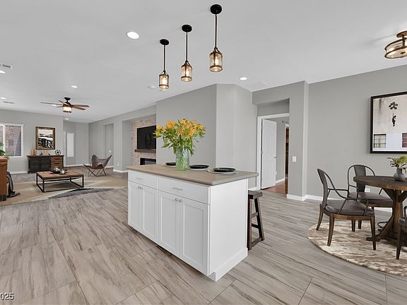 * OPEN HOUSE Sat August 13. 11:00 -2:00* Beautifully updated single-story home in Anthem Highlands! This open-concept floor plan has been reimagined with walls removed to enhance flow and natural light. Modern upgrades include oversized porcelain tile and laminate flooring, a electric LED fireplace, fresh exterior and garage floor paint. The chef’s kitchen features stainless steel appliances, sleek hood range, and a custom island perfect for prep and entertaining. LED lighting throughout whole home. Bathrooms have been tastefully remodeled with beautiful tile work and stylish finishes. Located in the desirable Anthem community with scenic trails and parks nearby. Just around the corner from Inspirada’s new shopping center and minutes from the Albertsons plaza. This move-in ready gem offers the perfect blend of style, comfort, and convenience!