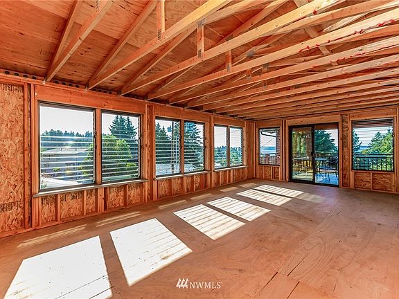 Fantastic opportunity to own this great home. Large covered deck with tile floor will keep you dry in the winter as you enjoy the Sound & mountain views. Large open kitchen with new flooring, 2 ovens, microwave, gas range, built in refrigerator & lots of cabinets. The home has had a lot of updating in the last few years. Newer roof, Undated electric panel box wired for generator, New paint inside and out, new carpet and laminate flooring, newer furnace. Everyone will like the over sized 2 car garage with work bench, basin sink and lots of cabinet storage plus two car carport & three storage sheds. Downstairs you will find the Laundry room & roughed in 3/4 bath. Finally off the kitchen is 370 Sq. Ft of addition ready for your imagination.