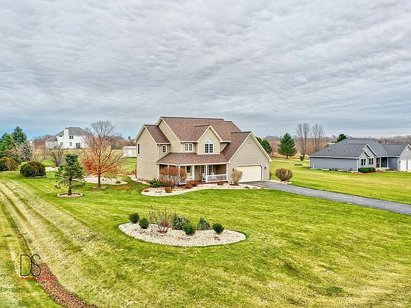 Beautiful Two Story with 4 Bedrooms and 2.5 baths built on 1 acre lot in desired Prairie Oaks Subdivision, NE of Ottawa, near I-80 for convenient commuting! Open two-story foyer entry with formal Dining room or flex space upon entry. See thru fireplace into kitchen from living room with living room featuring a large bay window. Abundance of natural light in the kitchen table area as it overlooks the backyard entertaining and open yard space. Corner lot features mature landscaping and custom designed stamped concrete patio. Large 12 x 24 shed added in 2020 to the rear of the property. Master Suite features volume tray ceilings, large walk-in closet and private bath with large tub, double sink and separate shower with updated vanity tops and ship lap design. Full basement boasts a new family room finished in 2018. Kitchen cabinetry painted and flooring updated in 2017. Roof and a/c updated 2019 and water heater 2020. Upper level has great new vinyl plank flooring in all bedrooms and hall new 2020. Crown molding in kitchen, living room added 2021.