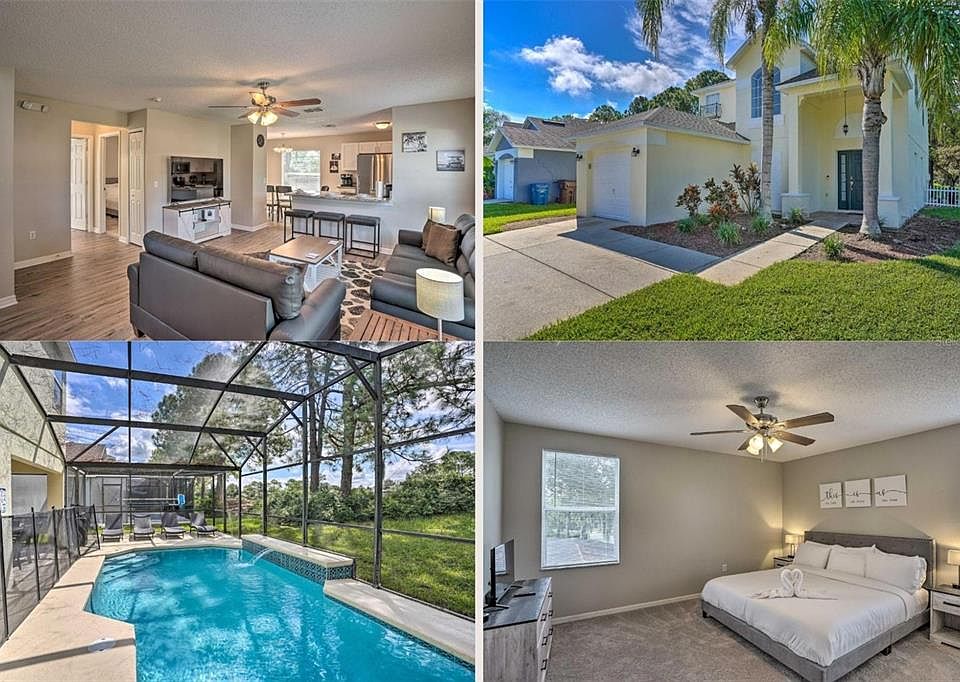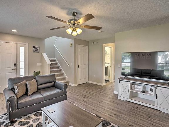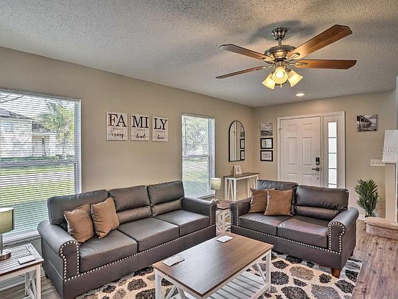 Welcome to a home that feels like a vacation! This 4 bedroom, 2 bath home is nestled in the Southern Dunes Golf Community. You'll find yourself close to parks, Central Florida cities, culture, and history. The property has a spacious Guest Master on the first floor connecting to a full bathroom which also has a sliding door to the screened in pool overlooking the pool and golf course. Upstairs you have two additional bedrooms with plenty of space and sleeping arrangements, a working station for remote work or for the kids to do homework, and a spacious Master Bedroom overlooking the Golf Course. This corner unit lot has convenience close to shops, Florida attractions, as well as space, amenities, and a cozy set up for the perfect retreat. Property provides unique leasing arrangement of a year or less, see how we can accommodate your next stay in Central Florida!