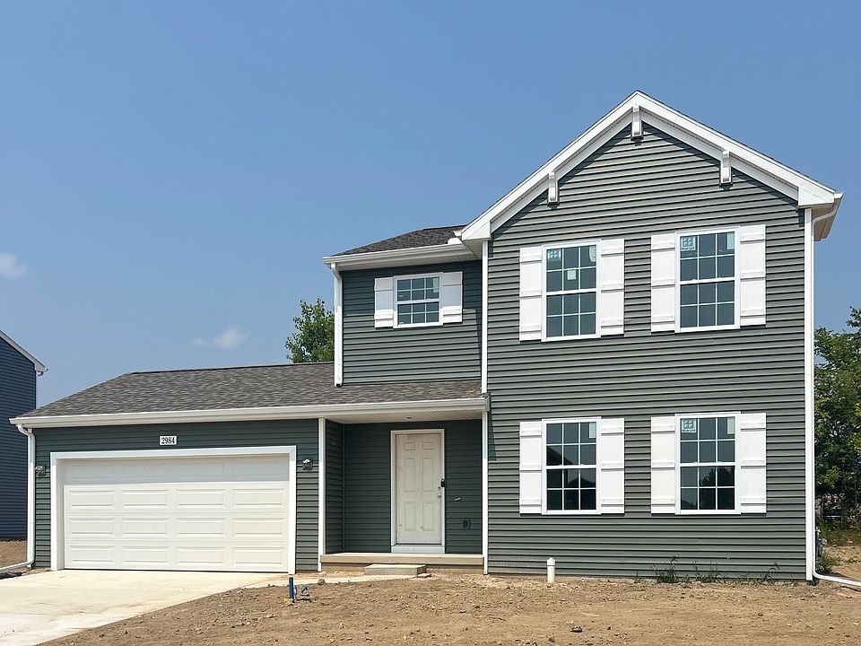 New construction home MOVE IN READY in Shadybrook, located in DeWitt school district. RESNET energy smart construction will save owner over $1000 yearly plus home has 10-year structural warranty! Over 1800 sqft of living space on 2 levels blends function with style. The main floor has vinyl flooring throughout and features a large great room, spacious kitchen with white cabinets, quartz counters accented by subway tile backsplash and breakfast bar with pendant lighting above. Appliances include stainless steel range, micro hood, dishwasher & refrigerator. The eat-in kitchen has a dedicated dining nook with slider doors leading to a 10x10 patio. The first floor is also equipped with a mudroom, laundry room with washer & dryer included, plus a stylish powder bath. Upper level boasts primary suite complete with WIC and private bath, 3 spacious bedrooms and an additional full bath. Home also has attached 2 car garage with openers and keypad entry, covered front porch entry.