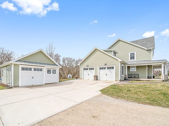 This is a stunning Property! This 2372 sqft 2 story 3 Bedroom, 3 1/2 Bathroom FARM HOUSE was built in 2013, and sits on 2.06 acres! This home has the charm of a traditional farm house but with all the modern wants and needs for today's living! The 3 bedrooms, 2 baths, and laundry are on the second level. The Main level consists of a partially open floorplan with the kitchen and the living room. The center point of the living room has a beautiful woodburning/gas log fireplace with an original Barn Beam for a mantel. The mantel has a unique custom feature, there are wooden pegs that slide out to hang the stockings at Christmas time! There is a separate formal dinning room, and a modest office space just off the front door entrance. There is also a mud room off the attached, finished, heated, 2 car garage. The basement is partially finished and has an additional living space, workout space, full bathroom, and tons of storage space possibilities! Other notable mentions for the home are 3 panel solid oak doors! (including the basement!) A couple of the doors on the main level have transoms above the doors. The well is a constant pressure well pump. Onto the outside! There was a second 20' x 25' garage built in 2021. This is a great added space for a vehicle, yard equipment, or entertainment space. The back of the garage has patio doors that open up to a 23' x 8' Trex deck that wraps around the 24' above ground pool. The 13' x 24' "goat barn" is the perfect spot for goats and chickens but could be used for whatever you fancy! There are also the pig pens that were set up to handle about a dozen 4-H pigs. The pens could also be adapted to house goats, sheep, or any small farm animal! There is room on the East side of the property for about a 1 acre pasture. The cherry on top is there a creek that runs along a portion of the South property line! This is a beautiful property that is ready for the next lovers of the country life!