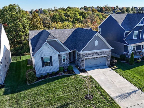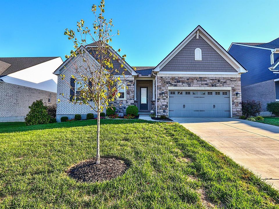 Better than new full brick ranch in Thornwilde neighborhood. Attractive exterior features soldiered brick, stone accents, & lush landscaping. This Drees built Hialeah boasts high-end luxury vinyl flooring & 10ft soaring ceilings. Popular split bedroom open floor-plan. Large living room offers stone surround gas fireplace & overhead fan. Gourmet kitchen has 42 inch cabinets w/ crown molding, high-end SS appliances, island, tiled backsplash, & walk-in pantry. Dining area w/ wood views & walk out to the partially covered deck. Primary suite includes fan, walk-in closet, & adjoining bath w/ two separate vanities, large tub, walk-in shower, & gorgeous tile. Two add'l bedrooms, 2nd full bath & laundry conveniently on the first level. 9ft pour basement has high-end custom finishes, LVT, walkout, Stone wall accents & wet bar area. 4th bedroom, 3rd full bath, plus spacious exercise room. Peaceful wooded view from the patio or deck. All appliances, TVs, high-end sound & security systems included. Low county taxes. Many community amenities including pool, clubhouse, walking trails, & tennis courts. Can't be replicated at this price!