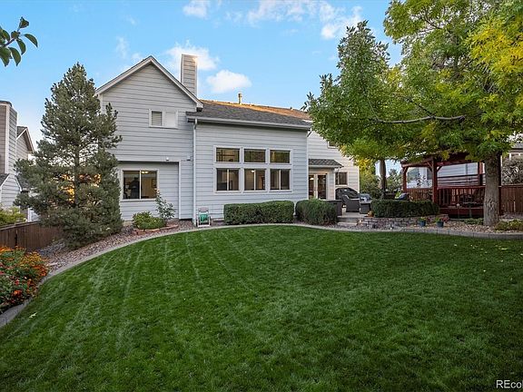 Immaculate 4 Bed 4 Bath 2 Story with finished basement in very desirable neighborhood. Impeccably remodeled, updated, and upgraded with luxury options throughout including, updated kitchen and bathrooms, upgraded flooring, stainless steel appliances, granite countertops, brick fire place with new insert, plantation shutters, hardwood flooring, central air conditioning, open floor plan and so much more. Main floor office has a closet and can easily be a 5th bedroom with a 3/4 bath right next door. Basement is nicely finished with plenty of room to play, wet bar, bonus craft room, bathroom, and tons of storage. Huge 3 car attached garage is super clean with access to the back yard. Private outdoor entertaining is spectacular with the professional landscaping, privacy fencing, back patio and extra deck, and outdoor lighting. Radon mitigation unit is already installed, furnace is certified, and the roof is impact resistant. The home sits on a quiet circle, is close to open space hiking/biking trails, and everything Highlands Ranch has to offer. The original owners have meticulously maintained and upgraded this home and pride of ownership really shows throughout the house. Welcome Home!