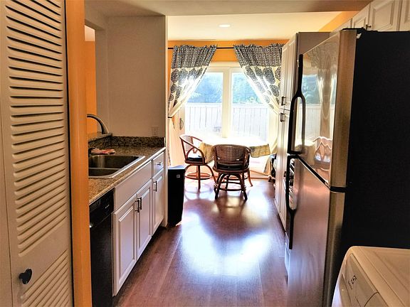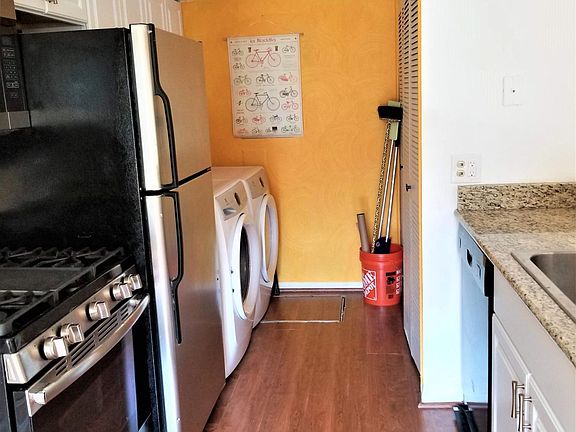 The living room comes fully furnished with a couch, coffee table, and additional pieces for your convenience. The kitchen is outfitted with granite countertops, newer appliances, and is stocked with kitchenware, making your move-in process simple. Hardwood floors run through the living and kitchen areas, while the bedrooms are carpeted for added comfort. Both bedrooms offer generous closet space. The bathroom has been updated with modern fixtures and a clean, functional layout. Large windows and overhead lights make the home bright throughout the day. Also includes a washer and dryer for in-unit laundry.