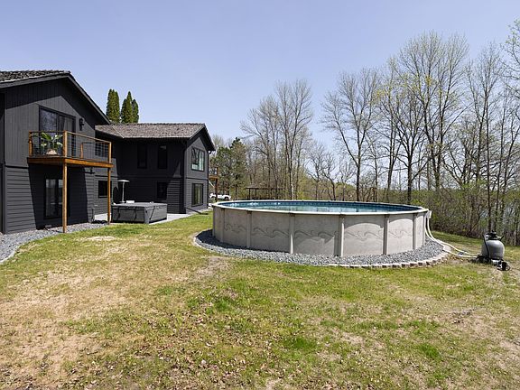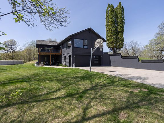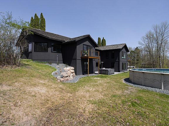 Welcome to your 4 bedroom, 3 bath modern dream home situated on over 16 acres on Red River Lake near Fergus Falls. This impressive home features updated windows & doors, an abundance of natural light and breathtaking views, new LVP flooring, a gourmet kitchen with all new stainless steel appliances, quartz countertops and center island, formal dining room and cozy living room with a wood-burning fireplace, perfect for entertaining. The primary bedroom retreat is one-of-a-kind with a private balcony, cozy den with fireplace, his & her closets and ensuite bathroom. Additional main floor bedrooms share an updated bathroom plus a bonus room that makes a great study or game room. The lower level features a spacious guest room, sauna, laundry area, a large family room and an impeccably designed bar with a walk-out patio. Outside enjoy the above ground pool, hot tub, gazebo with amazing views, apple trees, heated shop, storage building and tree-lined paths that lead you to the water's edge.