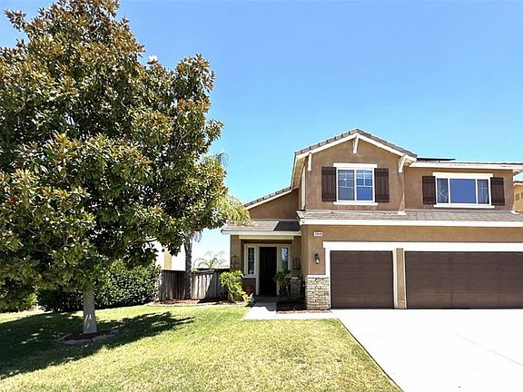 Upon entering you are greeted immediately by radiant wood floors all throughout and vaulted ceilings above the formal living room and dining room. This leads you right into a large open concept bright kitchen, with stainless steel appliances that overlook a cozy fireplace and family room where you will undoubtedly want to spend many nights with your family. The main floor has a bedroom and full bathroom for your friends and family whenever they come and visit. The Large Primary Suite is flooded with tons of natural light. Bath includes dual sinks, walk-in closet, stand up shower, and soaking tub! The backyard has a nice outdoor patio space with lattice. There is a dog run on one side of the yard along with a protected garden area for you to plant vegetables on the other side. The large 3 car garage has plenty of space for 3 vehicles or a workshop. LOCATED JUST MINUTES FROM COMMUNITY PARKS, SHOPPING, WALKING TRAILS, MENIFEE LAKES GOLF CLUB, AND SO MUCH MORE
