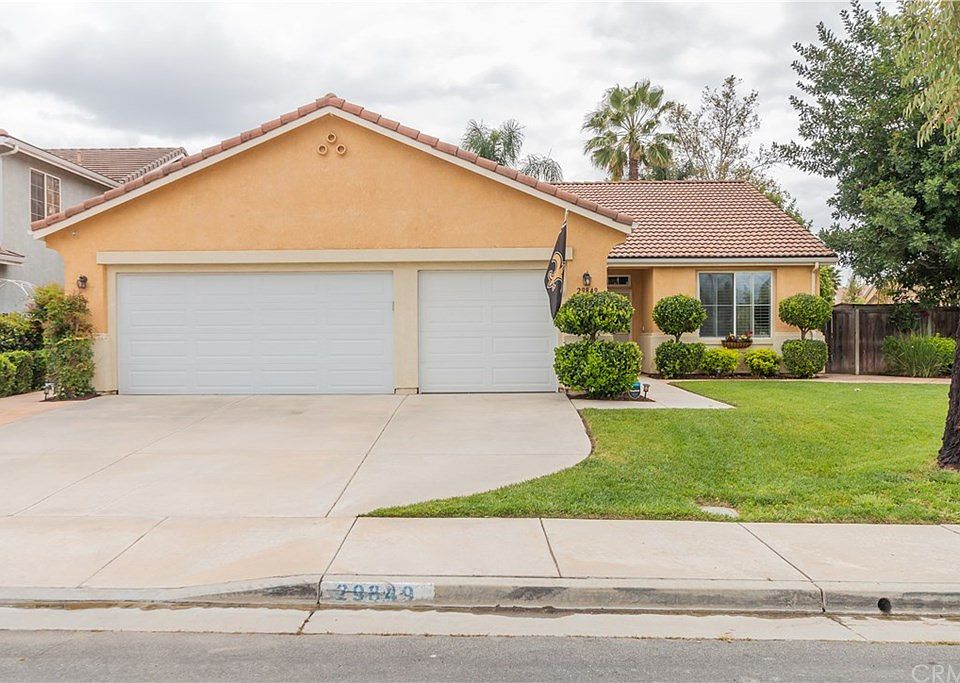 Welcome to this gorgeous 4 Bedroom, 2 Full bathroom Corner Lot Single Story Home across the street from the park! As you enter the main home you are met with an open floor plan, brand new neutral paint throughout, high ceilings, wood flooring, ceiling fans, plantation shutters throughout and tons of custom built-ins like a separate office space. There are three spacious bedrooms to include a den/office space that can be converted into a bedroom. The spacious kitchen offers tons of cabinet and counter top space, granite counters, tile backsplash, soft close cabinet doors, double pantry with frosted glass, breakfast nook with direct access to the beautiful courtyard and more. The spacious master bedroom offers a oversized walk in wrap around closet which the photo only captures half of it, updated bathroom with, natural lighting, dual vanity sinks, glass stand-up shower with subway tile, and soaking tub. Enjoy the private backyard oasis which offers a beautiful patio cover with lights, fans, tv mount for entertainment, Built-in BBQ station and lots of room for yard play! This beautiful home has it all with No HOA Fee, low taxes, located directly across the street of a huge play park and Close to award winning and highly desired Murrieta school district. Don't wait call now!