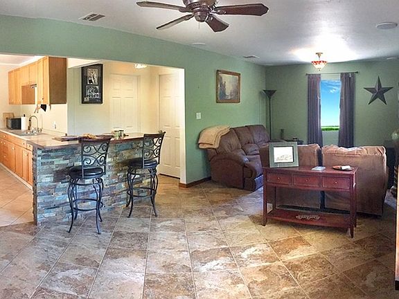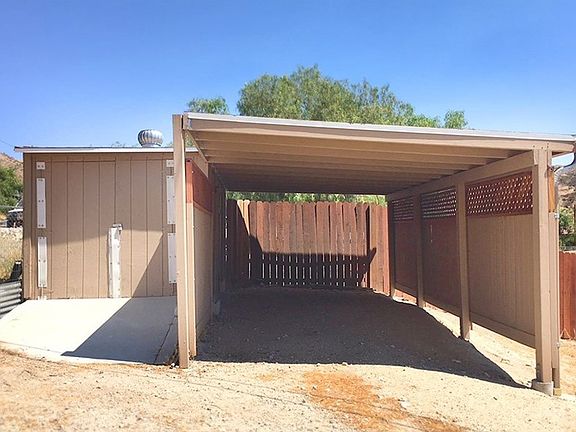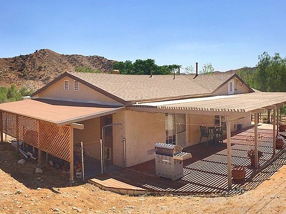 Must see this home to appreciate, home is in a secluded location, but you can get to the freeway and shopping within ten minutes or less! House has refrigerated air and cools the home quickly. Easy care tile floors throughout. Beautiful front picture window and garden box bay window in kitchen. Nice size laundry room with shelves and cabinets. Wrap-around wood deck with a wood patio cover. Sit on the front porch and enjoy the view. Property has multiple cottonwood trees surrounding the front and side fence, also lined with pine trees mixed in. The trees have manual sprinkler operation. The rear porch is covered for shade for your pet's side yard and can be used as a dog run. The large main yard is entirely fenced. Plenty of parking for RV on large lot. There is a nice size carport plus a large shed. Automatic sliding gate entry for vehicles with small gate for guests. It is zoned for horses