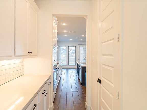 Home office with French doors and formal dining room along one side of two-story entry. Two-story family room with wall of windows and a fireplace, opens to kitchen and morning area. Kitchen features walk-in pantry, Butler's pantry and generous island with built-in seating space. First-floor primary suite. Dual vanities, garden tub, separate glass-enclosed shower and two walk-in closets in primary bath. A second bedroom is downstairs. Media room, game room and three secondary bedrooms are upstairs. Extended covered backyard patio. Mud room off three-car garage.