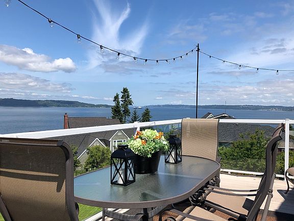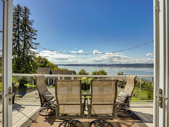Stunning 180 degree Puget Sound Water Views from the southwest to northeast. Unobstructed Views of the Mountains of Olympic National Park and Vashon Island. 2 View Decks with Western Exposure to enjoy Spectacular Sunsets. Custom designed with Living Room, Dining Room, Kitchen, Office and Deck on upper level to maximize views. American Cherry Hardwood Floors. 4 bedrooms, 3 full baths, 2 half baths. Resistance/excercise Indoor Swimming Pool on lower level. Community stairs down to the beach.