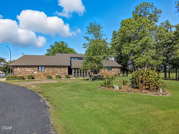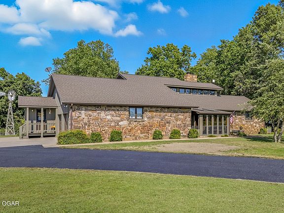 Set on 76 picturesque acres just outside Carl Junction, Missouri, this high-end custom home blends refined craftsmanship with rustic charm. Constructed with 2x6 framing and genuine Arkansas stone, it showcases thoughtful details throughout—wood beams, wood-paneled ceilings, Arkansas stone accents, and warm, natural tones that create a welcoming atmosphere. A new Tamko roof was installed on both the home and shop in September 2025, offering long-lasting peace of mind.