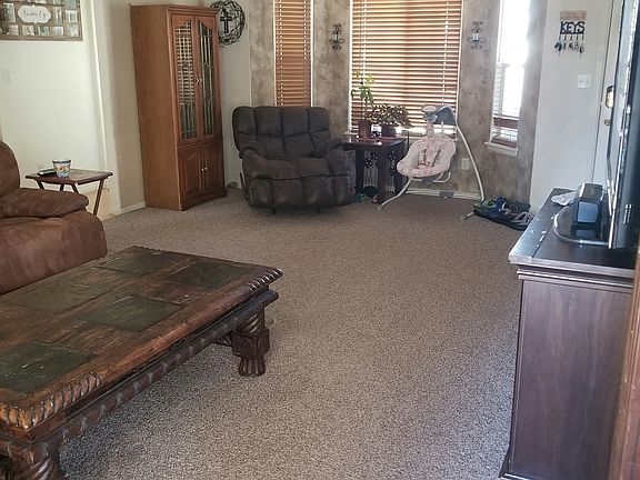 Well maintained rancher with split bedroom plan. Large living room and kitchen. Surround sound throughout. Hookup for gas and electric dryer. Water filtration system. Fenced backyard with storage shed and fire pit. Central FAG heat and refrigerated AC.