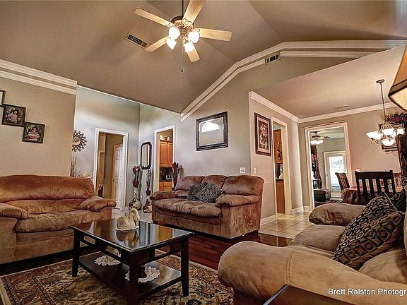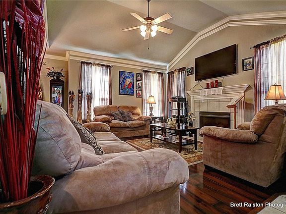 Really cute 3 bedroom, 2 bath home in desired neighborhood. Laminate wood floors in main areas, tile in west areas and Kitchen/ Dining area. Gas log/gas starter fireplace. Two living areas, covered patio, nice size backyard with wood privacy fencing. Storage shed conveys with property. Close proximity to I-49 and easy access to Hwy 71B.