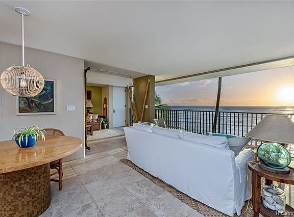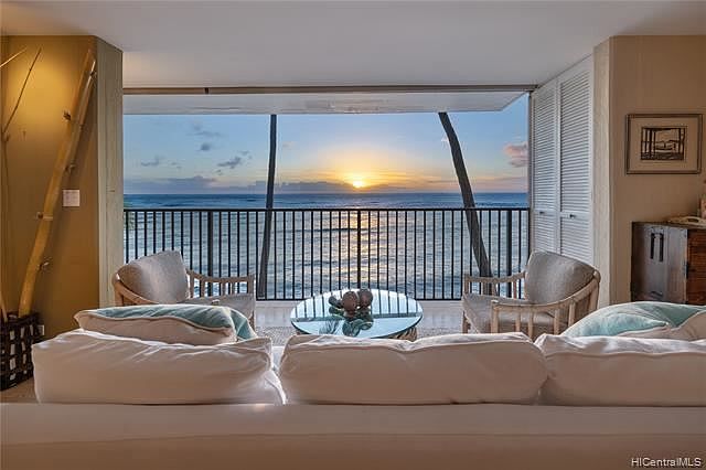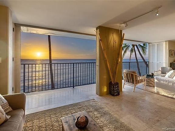 This residence is a stunning, rare opportunity to live in modern luxury on Oahu's Gold Coast. Experience 180-degree views from your living room, where custom floor-to-ceiling glass windows span 23+ feet of ocean frontage & disappear to allow for a direct connection to the surf, palm trees, trades, and sunset. This mid-century building's clean design features textured concrete walls and architectural details that compliment the views and sounds of life on the water. Formerly a 2-bedroom, 2-bath residence, 405 has been remodeled to create the perfect den/office to work from home. This is a place for easy, active living - wake up and snorkel, swim, surf, walk or run Diamond Head, or enjoy breakfast at one of the nearby restaurants or clubs. Timeless style and a low maintenance fee makes this an ideal place to call home.