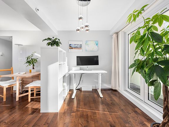 Corner unitTriple exposureBathed in natural lightWine fridgePrivate balconyPeaceful green viewsBright and spacious den