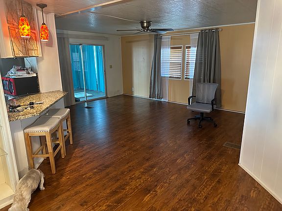 One year. Includes swimming pool, pickle ball, yoga, club house, picnics, activities, private community, with park. Peaceful surroundings. Laundry room with laundry washer, dryer in unit. Garnet kitchen, wood floors, vinyl windows, private three car port. Option to buy after the first year.