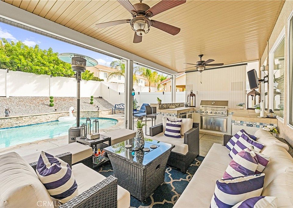 HONEY STOP THE VEHICLE! THIS IS THE BEST VALUE HOME IN ALL OF MURRIETA! This two story POOL home is fully upgraded inside and out! The home has low maintenance front yard, front porch, upon entry has vaulted ceilings, formal entry, formal living and dining area. Hardwood floors throughout the main level, kitchen is fully renovated with new cabinets, quartz countertops, double pantry, tile flooring, new doors to the backyard, spacious family room with gas fireplace, downstairs bedroom, full renovated bathroom with a tile shower, additional bonus room/office, and downstairs laundry. Upstairs you have an oversized loft, plush carpeting, two spacious secondary bedrooms, renovated hallway bathroom, large primary bedroom, fully renovated primary bathroom with soaking tub, tile shower with glass enclosure, and a spacious double walk in closet with lots of built in storage! Now to what is arguably the best part of the home… The entertainers backyard! Brand new HEATED POOL only a few years old with jacuzzi, pebble tech finish, alumawood patio cover with fans, BUILT IN GAS BBQ with double fridges, multiple drawers, and tile top with stucco finish. Pure entertainment area cannot be complete without a full built in gas FIRE PIT! This home truly has it ALL! Brand new dual zone AC units, OWNED SOLAR!!!! 2 car garage with ample storage and a exterior EV charging box if you want the option to charge inside or out. Located around the corner off Winchester Rd for easy access and down the street from shops and eateries.